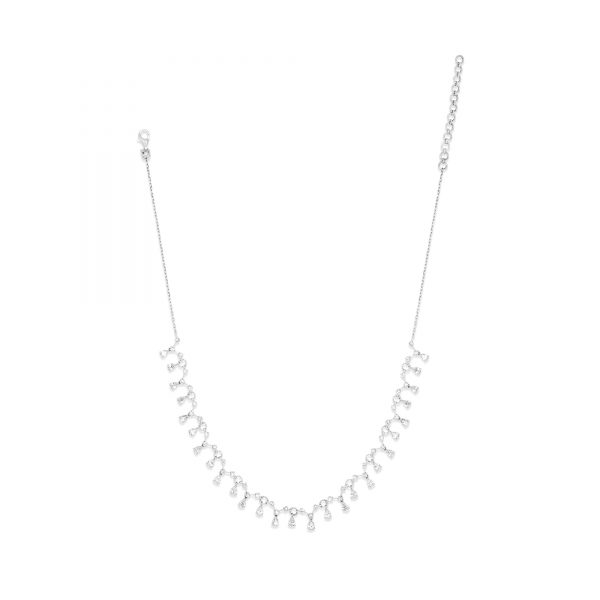 The Elegance Necklace custom made in 18K White Gold featuring Round and Pear Diamond weighing 4.39 carats combined total weight with F Color and VS1 Clarity.