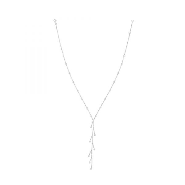 The Elixir of Beauty Necklace custom made in 18K White Gold featuring Round Diamond weighing 0.44 carats combined total weight with F Color and VS1 Clarity.