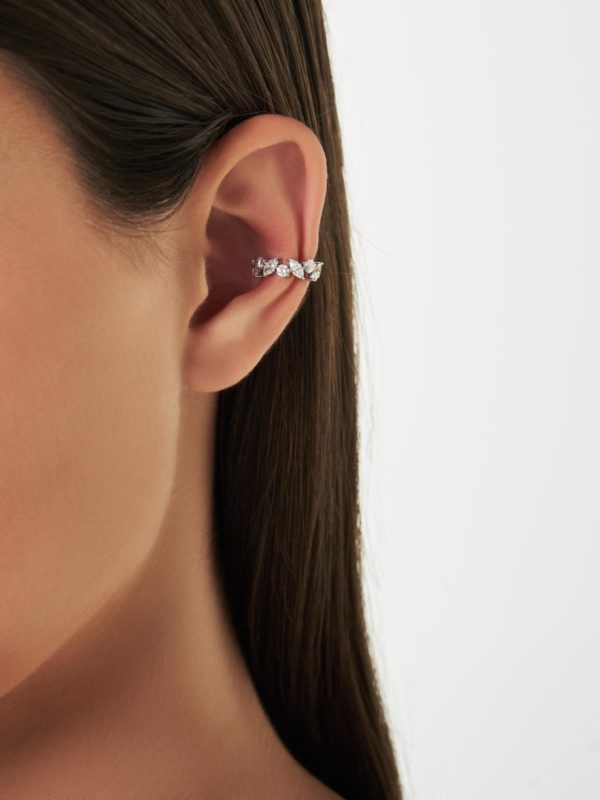 The Everlasting Twinkle Ear Cuff single piece custom made in 18K White Gold featuring Round and Marquise Diamond weighing 1.05 carats combined total weight with F Color and VS1 Clarity.