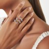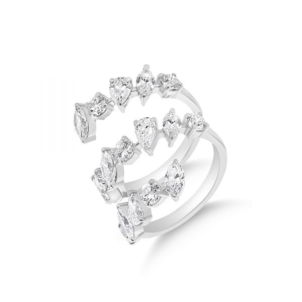 The Swirling Vortex of Diamonds White Gold Ring custom made in 18K White Gold featuring Round and Marquise Diamond weighing 3.80 carats combined total weight with F Color and VS1 Clarity